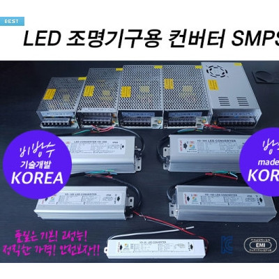 SMPS LED 파워서플라이 KC인증 아답터 12V 24V 방수/비방수 엘이디모듈 3구모듈용 시그널램프